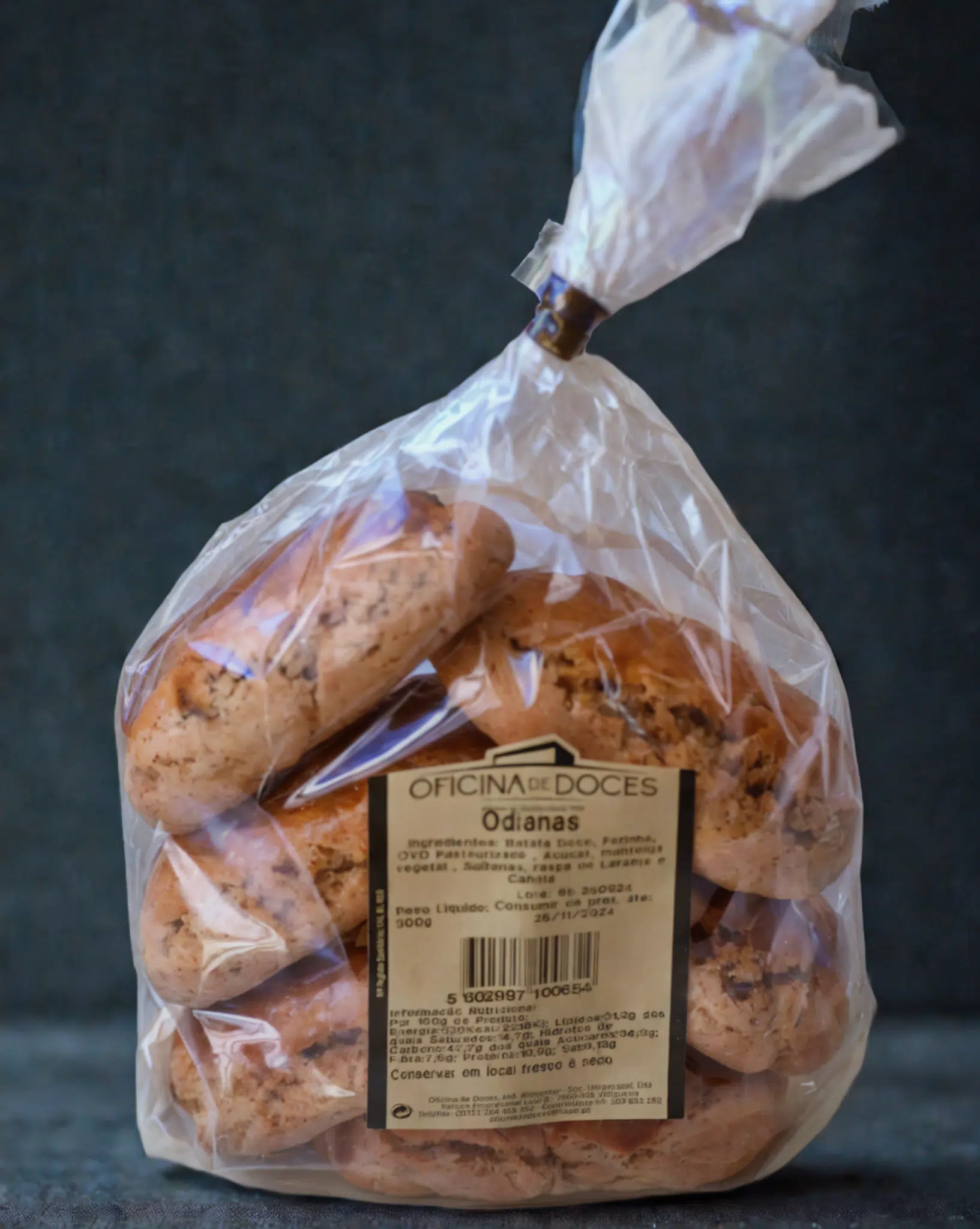 As Odianas são um bolo típico alentejano, feito à mão com batata-doce, sultanas alentejanas, raspas de laranja do Alentejo e um toque de canela. Estas características garantem uma textura cremosa, húmida e um sabor que equilibra bem os ingredientes regionais.