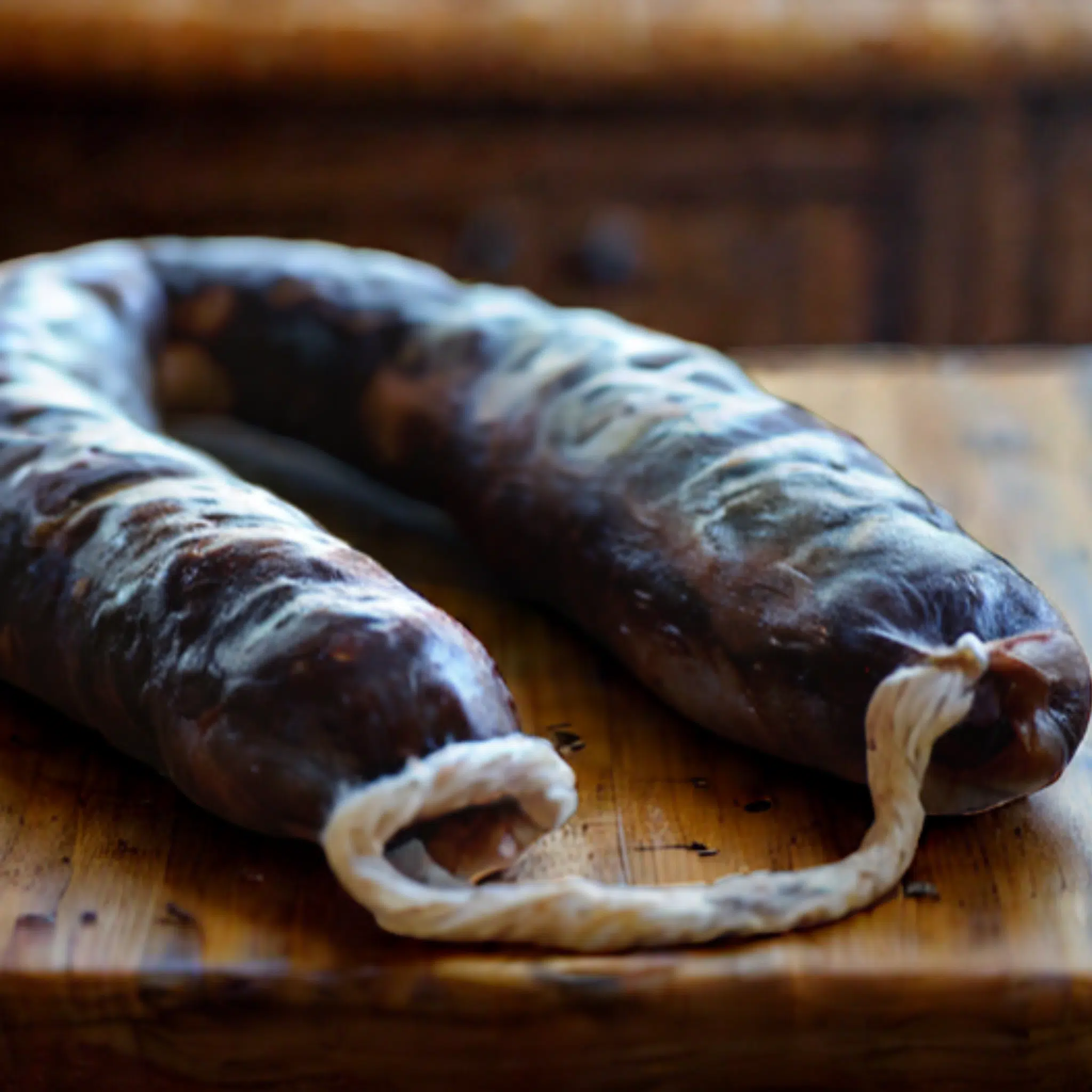 O Chouriço de Sangue, composto por 70% de carne suína e 10% de sangue de porco. Este enchido tradicional possui um sabor intenso e uma textura rica, sendo uma escolha autêntica para quem busca um produto artesanal de qualidade.